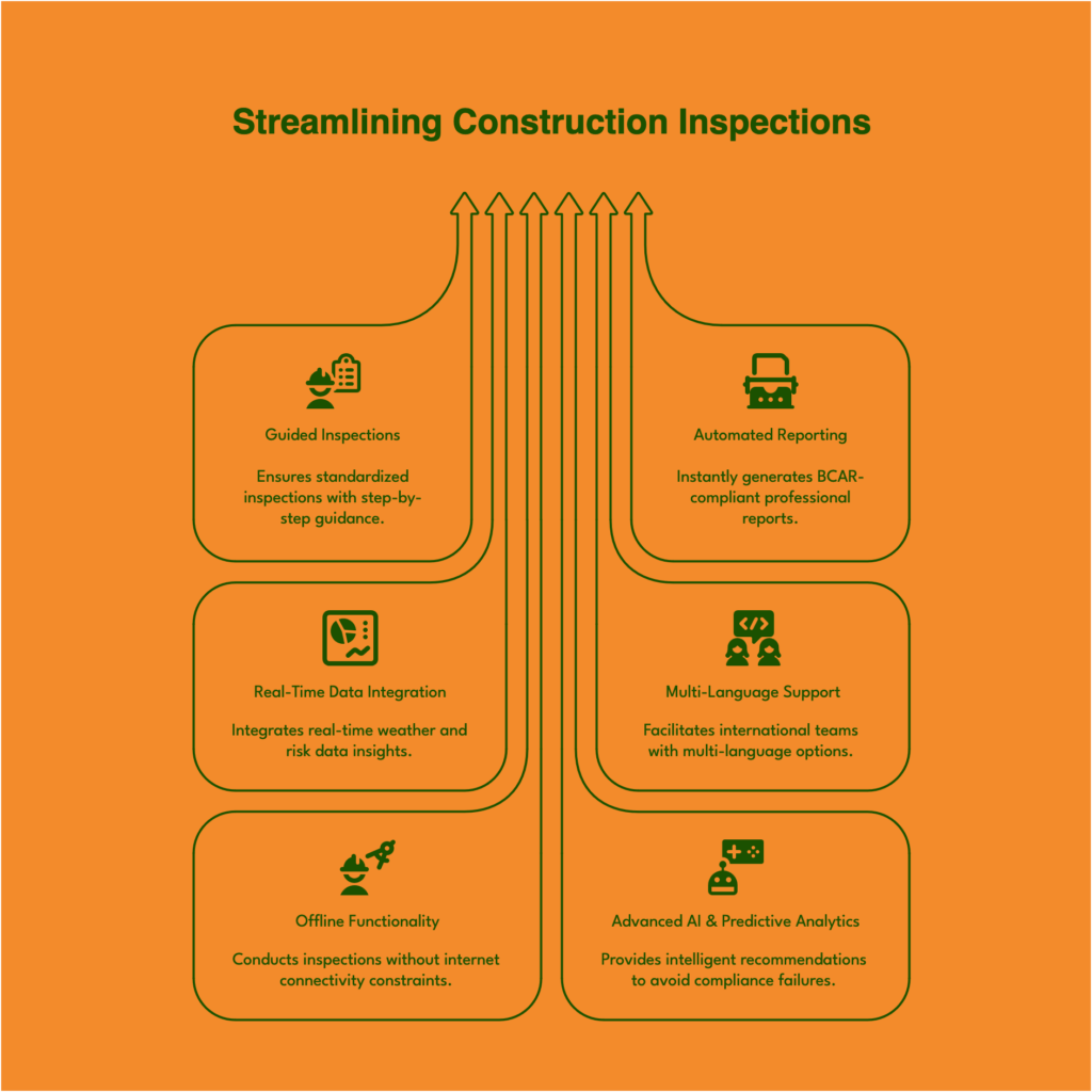 The construction industry faces significant challenges in regulatory compliance and inspection processes, including: